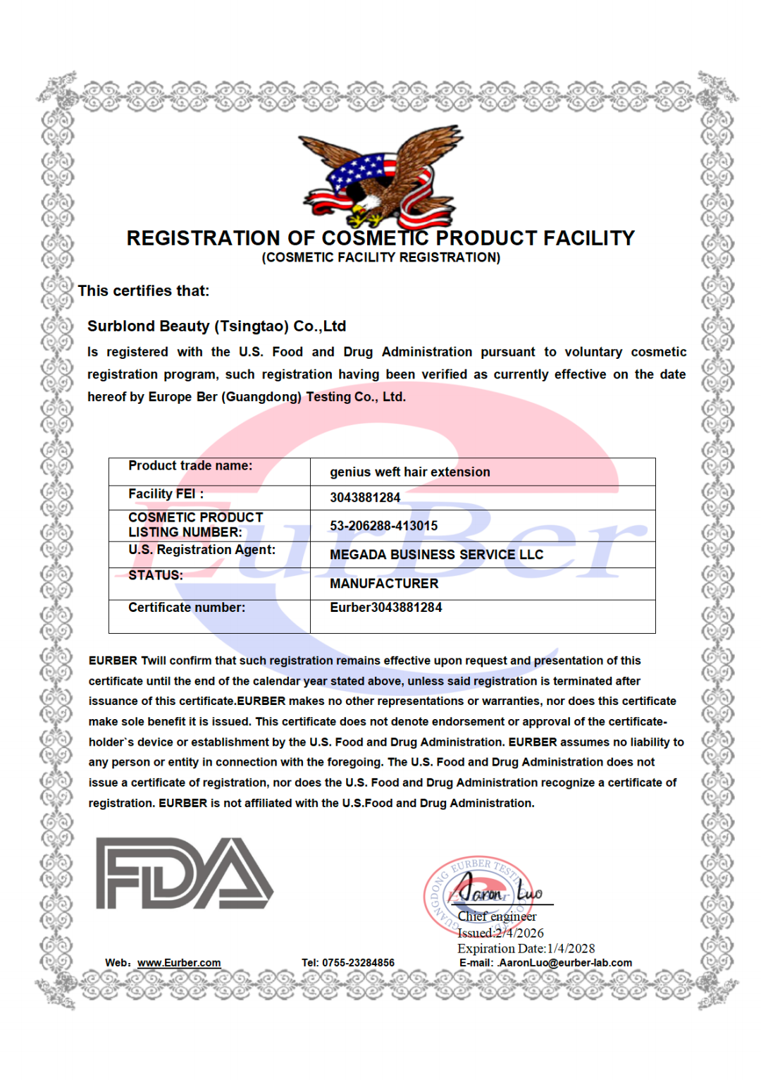 Surblond Beauty (Tsingtao) Co., Ltd. has obtained the FDA Cosmetic Registration Certificate.